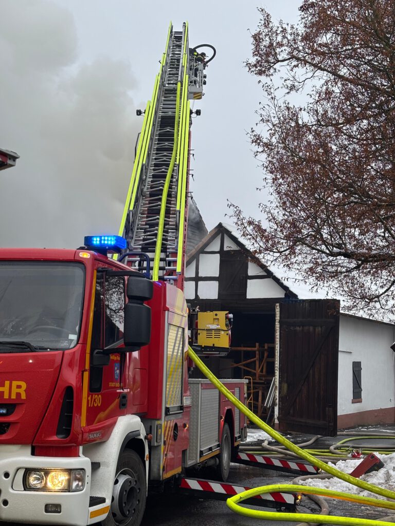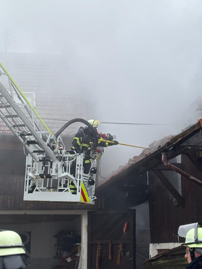 Heute Nachmittag wurden wir zur Unterstützung im Brandeinsatz nach Lohrhaupten alarmiert. Wir unterstützten die Feuerwehren aus Kempfenbrunn, Pfaffenhausen und Lohrhaupten bei der Brandbekämpfung über die Drehleiter und bei der Wasserversorgung. Vor Ort stand eine Scheune im Vollbrand. Dank dem schnellen und professionellen Eingreifen aller Kräfte vor Ort konnte ein Übergreifen der Flammen auf ein benachbartes Wohnhaus und eine weitere Scheune verhindert werden.